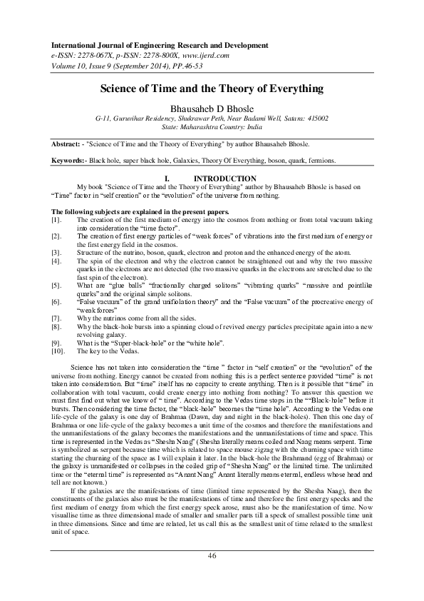 Pdf Science Of Time And The Theory Of Everything Bhausaheb Bhosle Academia Edu