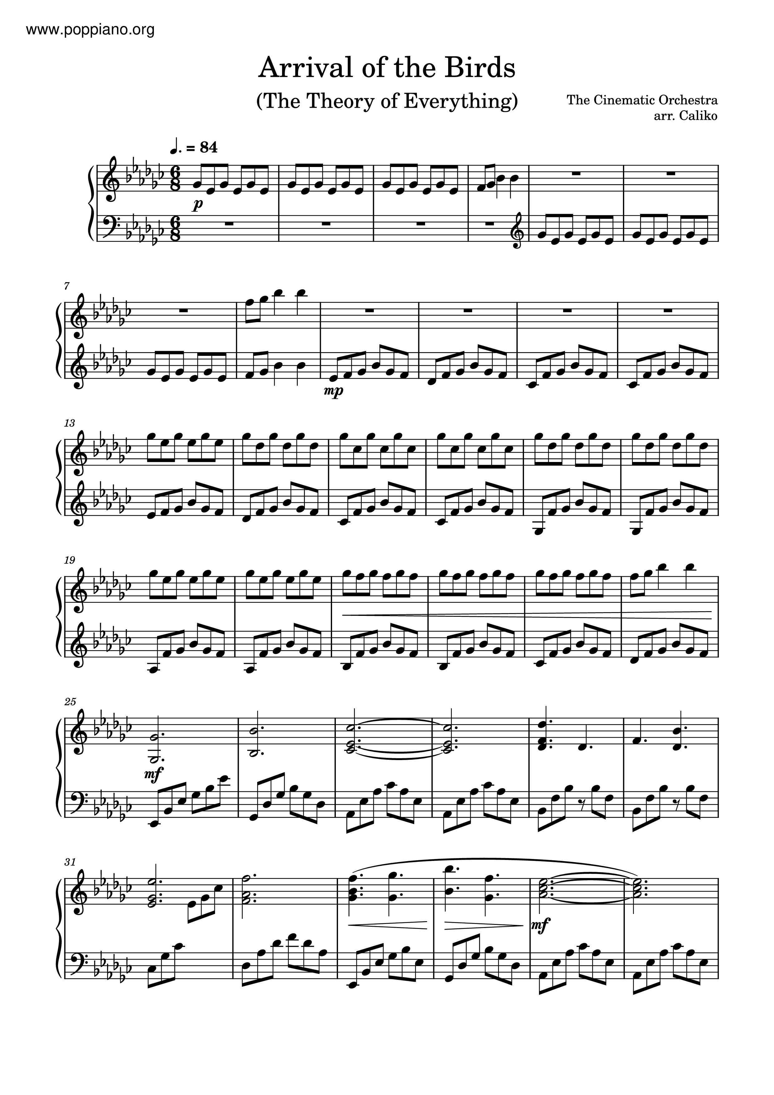 The Theory Of Everything Arrival Of The Birds Sheet Music Pdf Free Score Download